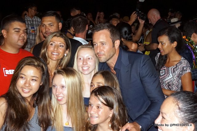 当日の第1回目上映前に、番組の蒼々たるキャストが登場します。エグゼクティグ・プロデューサーのピーター・レンコフ氏を初め、 あのアレックス・オローリン、ダニエル・デイ・キムなどのメインキャストが集まるレッドカーペットが開催され、この人たちを一目間近で 見ようと、 多くの人がワイキキビーチに集まります(今年はグレース・パークは来ない模様)。
