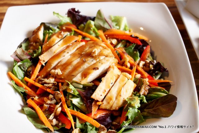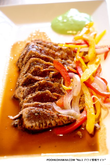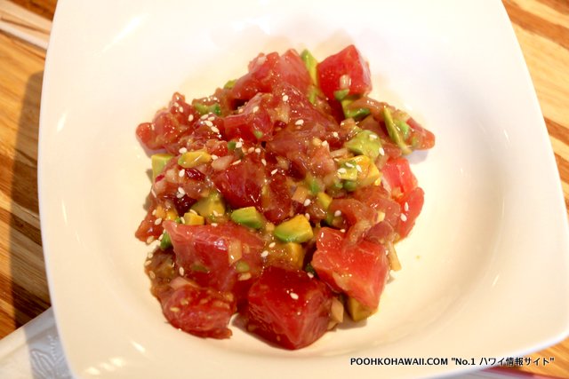 お料理は、各種サラダやサンドイッチ、バルサミコ風味の野菜やプロバローンチーズ、レタスとトマトを挟んだスパムバーガーや、まぐろとアボカド、生姜、ごま油、醤油を和え、ハラペニョでアクセントをきかせたアヒポキなど、ハワイならではのメニューもあります。