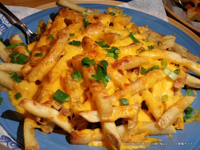 さて、平日の月〜金曜日の4PM~7PMはハッピーアワー。この時間はアイランド・ナチョスやビーチサイド・スライダーズ、バッファローウィング、フレンチフライなどがスペシャルとなっており、お得な値段で食べられます。チースが好きな人には、このチェダーフライズがおすすめ♫ バー・フードはフライものが多いのでヘルシーとは言えませんが、これがビールやカクテルに合いますよね〜。