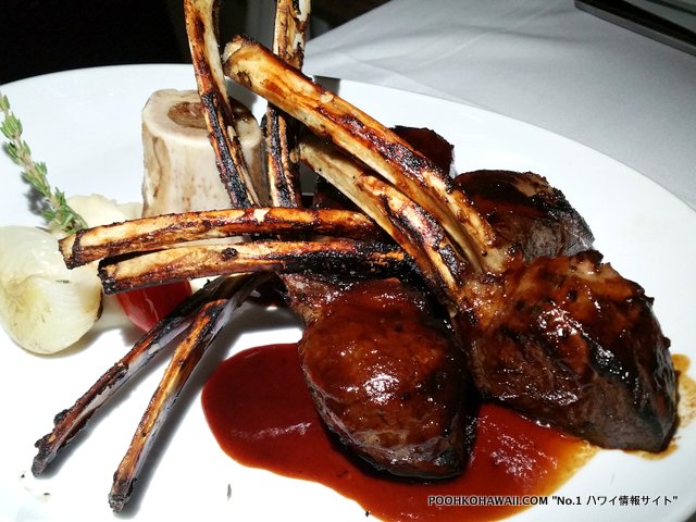 ビーチハウスで出されるビーフはUSDAプライムビーフ。最高級のお肉です。ビーチハウスはステーキがメイン。しかしシーフードも美味しいんです。みなさんはビーチハウスでいつも何をオーダーしていますか?ロコモコですか?一番、無難なチョイスであることは確か。今回、我々はメインにシーフードとラム肉を頼んでみました。