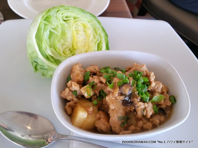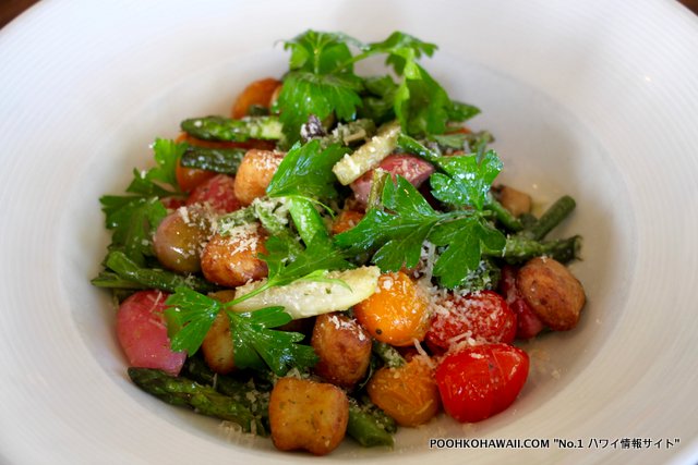 ボルケッタは、豚の丸焼きのイタリア料理ですが、トップオブワイキキのランス・コサカ・シェフはここでまたアレンジ。フィリピン料理風に仕上げました。フィリピン料理にはよくポークが使われますが、いい創作だと思います。下にあるリゾットと一緒にお召し上がりください。