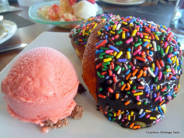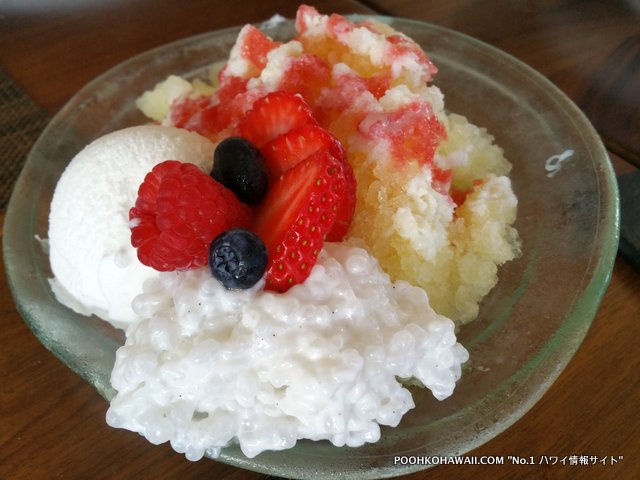 「パイナップル・シェイブアイス」($9) は絶品!写真の通り。シェイブアイスはパイナップルそのもの。ハウピアアイスクリームと、タピオカがシェイブアイスによく合います。食後のお口直しにどうぞ。