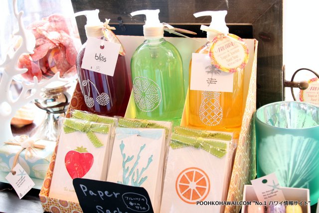 場所は、サラトガ通りのエッグスンシングスの隣。カジュアルファッション、バッグ、コスチュームジュエリー、キャンドル、ボディケア商品、ビーチをテーマにしたインテリア雑貨まで、多彩なアイテムを揃えています。取り扱っているブランドは主にOasap, Modern Lux, Ettika, Two’s Company, Cupcakes&Cartwheels, またローカルブランドのRevoir, Yireh, Lauren Moshi もあります。さらに、ショウ・イナオカ自らデザインのハンドバッグやオリジナルユニセックスTシャツシリーズも販売しています。