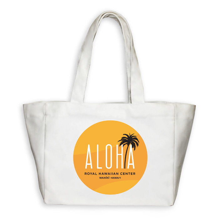 期間中、センター内の110店以上のショップやレストランにて、合計$300以上の買い物をすると、センターオリジナルのALOHAトートバッグがもれなくもらえます。白いキャンバス地にマンゴとパパイヤをイメージしたオレンジとセンターを象徴するパームツリーがアクセントのトートバッグは、使い勝手の良い大きめサイズで買い物やビーチにもとっても便利!